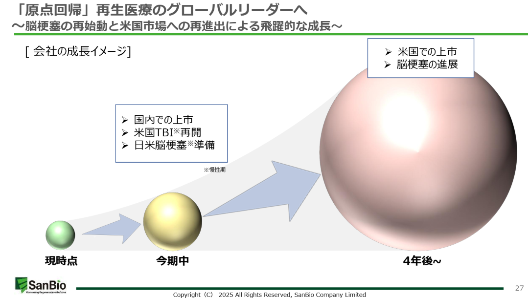 「原点回帰」の下、改めてビジョンとして掲げている「再生医療のグローバルリーダー」を目指すサンバイオグループの業績動向、事業化の進捗、今後の事業戦略等をお伝えします。