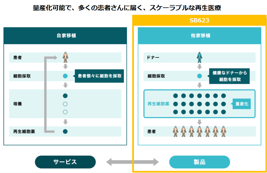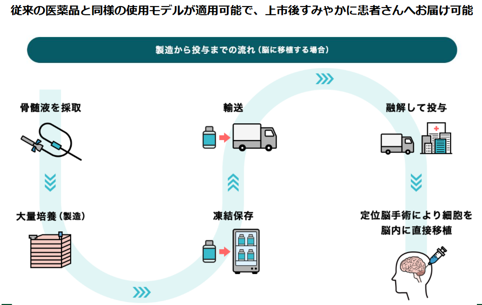 未だ有効な治療法のない慢性期外傷性脳損傷や慢性期脳梗塞など中枢神経系疾患等を治療する細胞治療薬を開発するバイオベンチャー。世界の再生医療の中心地である日本とアメリカに拠点を構え世界的な事業展開を図る。確立された量産化技術、競争優位性を高める特許戦略なども大きな強み。適応疾患と地域の拡大という掛け算による成長を目指す。
