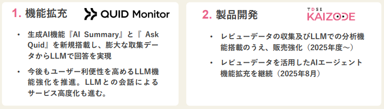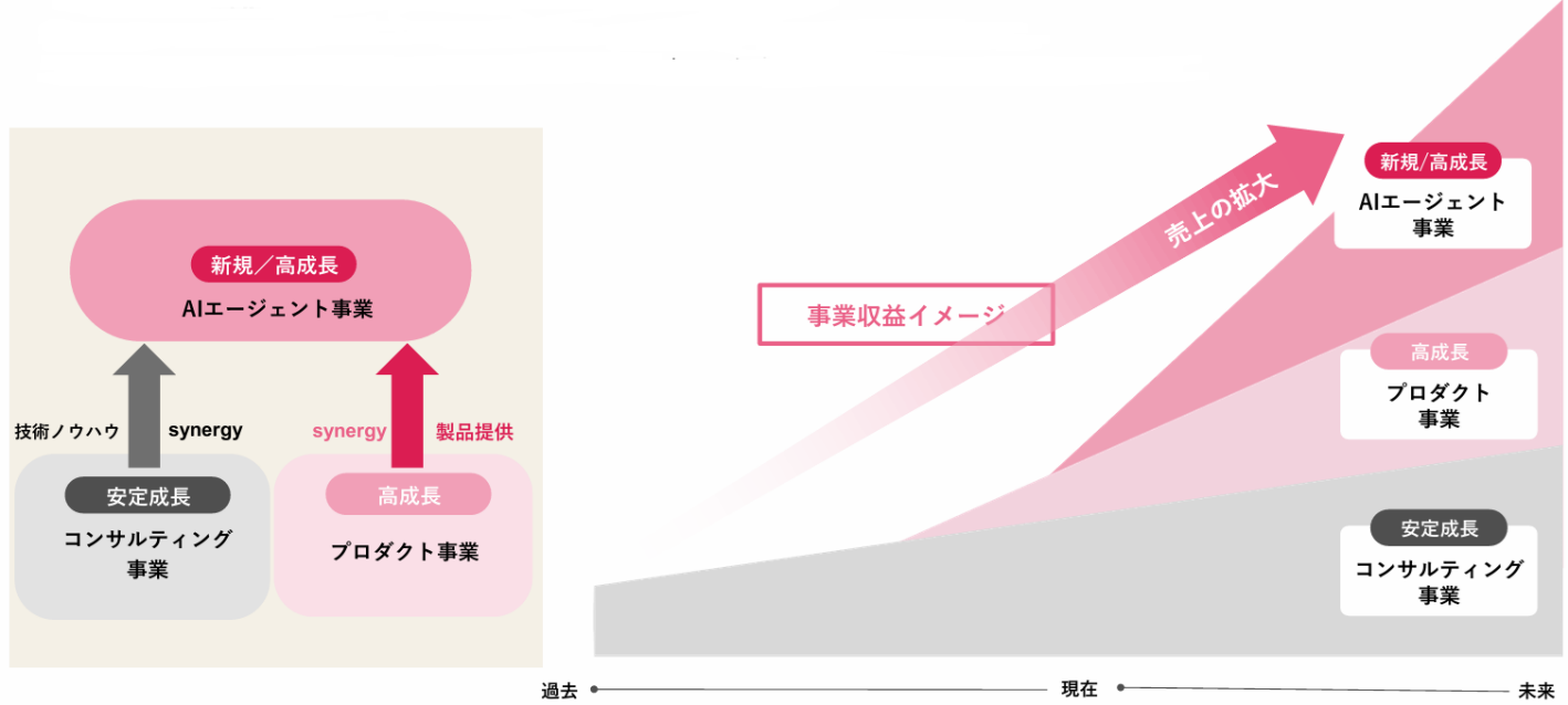 当初は26.1~27億円を計画していたが前年比3%増の23.7億円へ下方修正。既存顧客による一部プロジェクト収束の影響が大きかった。新規顧客については、従来型分析プロジェクトよりも生成AI・AIエージェントによる業務効率化を目指す企業が多いことから、今後事業全体の改編を進める。
