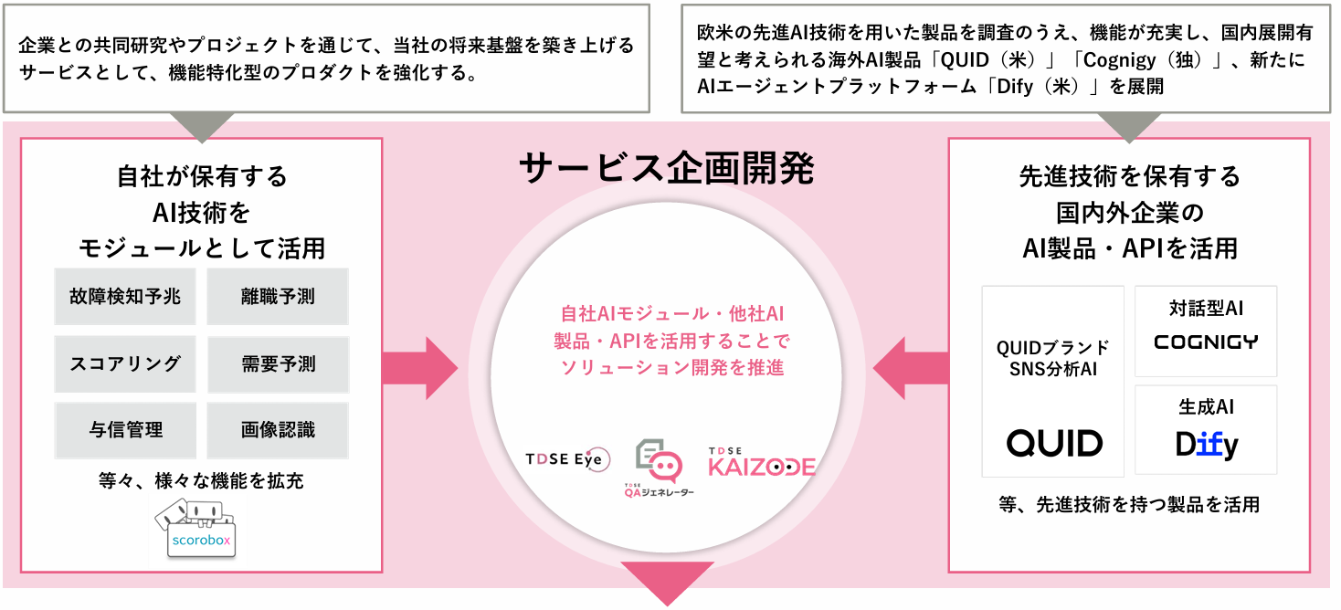 ●Dify Enterprise版のライセンス販売・技術支援を通じて企業向けAIエージェント導入を推進する。Difyの製造元であるLangGenius社との提携によりOSS版から商用版まで幅広く対応可能に。