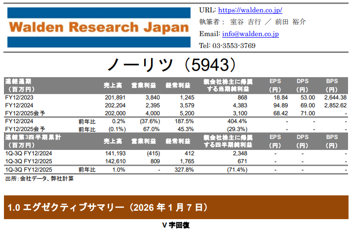 ガス・石油給湯機器の製造・販売を中心として内外で事業を展開しているノーリツにおいては、営業利益がV字回復しているのに引き続いて、2026年12月期に向けても更なる回復基調が引き続く方向性にある。市況低迷が引き続く中国における売上高が右肩下がりでの推移を示していることから同社としての売上高も伸び悩んでいるのだが、生産性の改善に向けての施策が奏功していることに加えて、販売管理費の拠出を抑制していく施策が着実に進捗している。例えば、中国においては現地での固定費を削減していく施策が持続的に進捗しており、損益分岐点も持続的に低下し続けていることが示唆されている。また、中期経営計画(2024年12月期~2026年12月期)の前提に沿った原価低減策も当初の想定通りに進捗しており、最終年度である2026年12月期に向けてはその効果が大きく拡大していく見込みである。一方、日本の省エネ法に基づくトップランナー基準の達成に向けて、同社は潜熱回収型給湯器の普及促進とハイブリッド給湯機の開発を加速させており、業界を先導する立ち位置にあるとされている。前者においては、排気ガスに含まれる熱(潜熱)を回収して再利用する仕組みが採用されており、これをもって燃料の使用量を減らし、省エネ性能を大幅に向上させることができるとされている。また、後者は、ガス給湯器と電気ヒートポンプ給湯器を組み合わせた高効率給湯システムのことであり、双方の長所を活かして、省エネ性能を最大化することができるとされている。