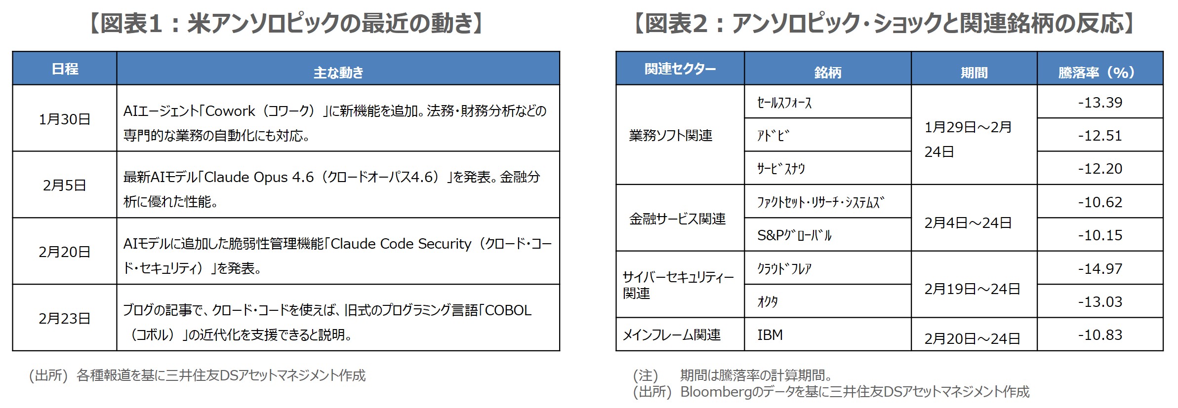 - 米アンソロピックは1月30日以降、法務・財務分析の自動化など、AIの新機能を立て続けに発表。