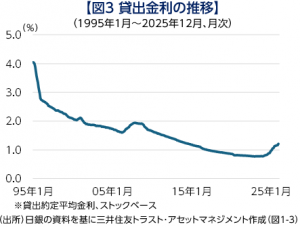 一方で、借入の増加は利払い負担を増加させるため、先行きの企業収益の下押し要因にもなり得ることには注意が必要です。特に足元では、銀行の貸出金利がすでに約11年ぶりの水準まで上昇しています【図3】。それでも早いペースで貸出が増加しているということは、活発な経済活動の裏側で、今後の利払い負担が蓄積しているということでもあります。現状のように、金利が大きく上昇するもとでの強い資金需要については、企業の財務悪化リスクとのバランスも見ていく必要があるでしょう。